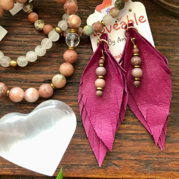 Leather earrings of all colours, necklaces or bracelets with healing stones, all handmade in Manitoba! Treat your favourite jewelry fan and place your order at Loveable Handmade.